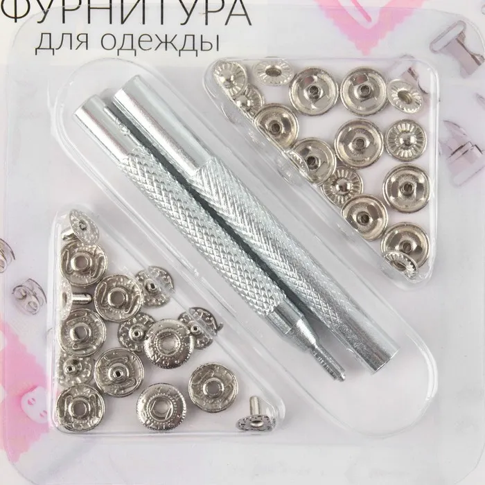 Набор S-образных кнопок с установщиком пригодится для создания или ремонта изделий из материалов разной плотности.