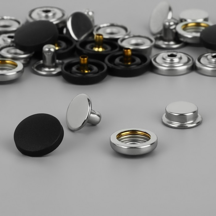 Застёжки выполнены из нержавеющей стали — они прочные и износостойкие, выдерживают воздействие солнечных лучей и перепады температур. Устанавливаются при помощи пресса, их крепление незаметно на одежде.