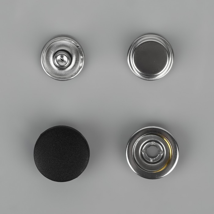 В наборе 10 кнопок, d = 15 мм, цвет чёрный.