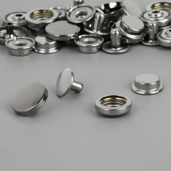 Застёжки выполнены из нержавеющей стали — они прочные и износостойкие, выдерживают воздействие солнечных лучей и перепады температур. Устанавливаются при помощи пресса, их крепление незаметно на одежде.
