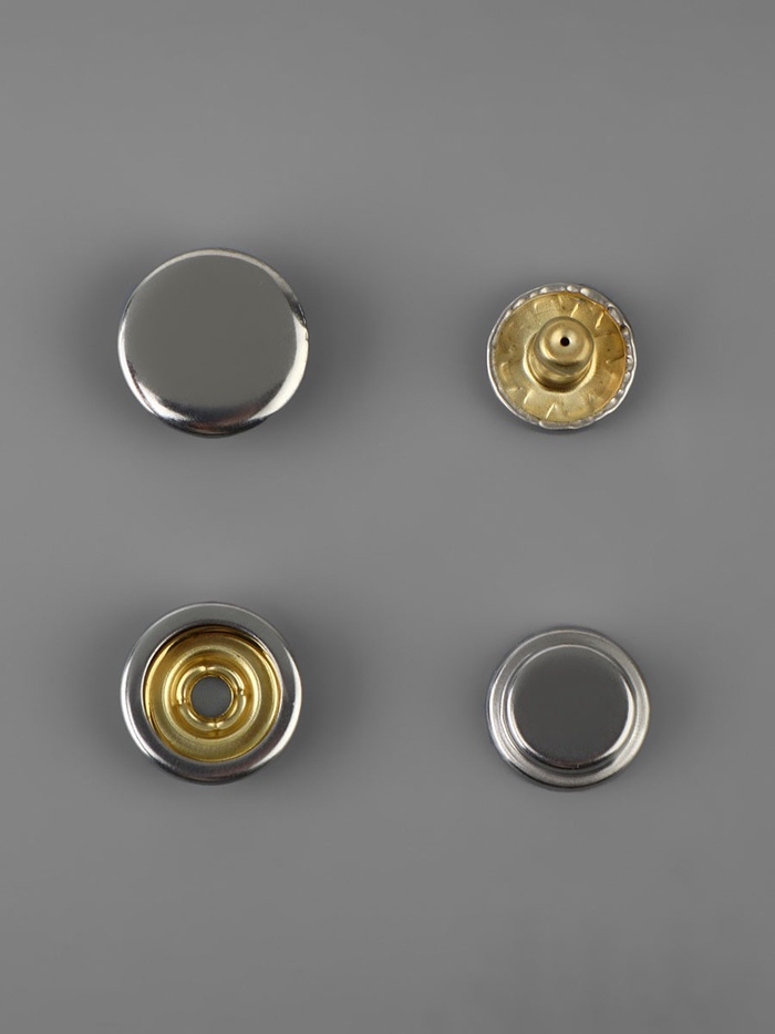 Кнопки «Дельта» отличаются кольцевой системой замка, они используются в производстве любых видов одежды и кожгалантереи.