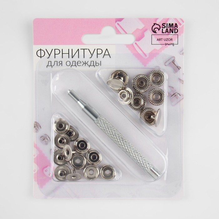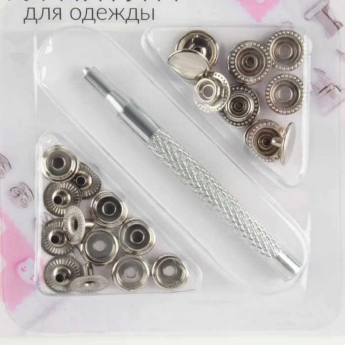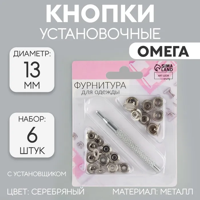 Набор O-образных кнопок с установщиком пригодится для создания или ремонта изделий из плотных материалов. Кнопки «Омега» прочные и износостойкие, отличаются жёсткой фиксацией. Они используются в качестве фурнитуры для верхней и рабочей одежды, юбок из кожи или джинсы, чехлов, палаток, детских вещей и других изделий.