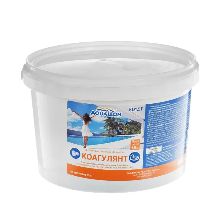 Коагулянт Aqualeon используется для очистки воды в плавательных бассейнах от мельчайших взвешенных частиц, примесей, после отстоя воды.