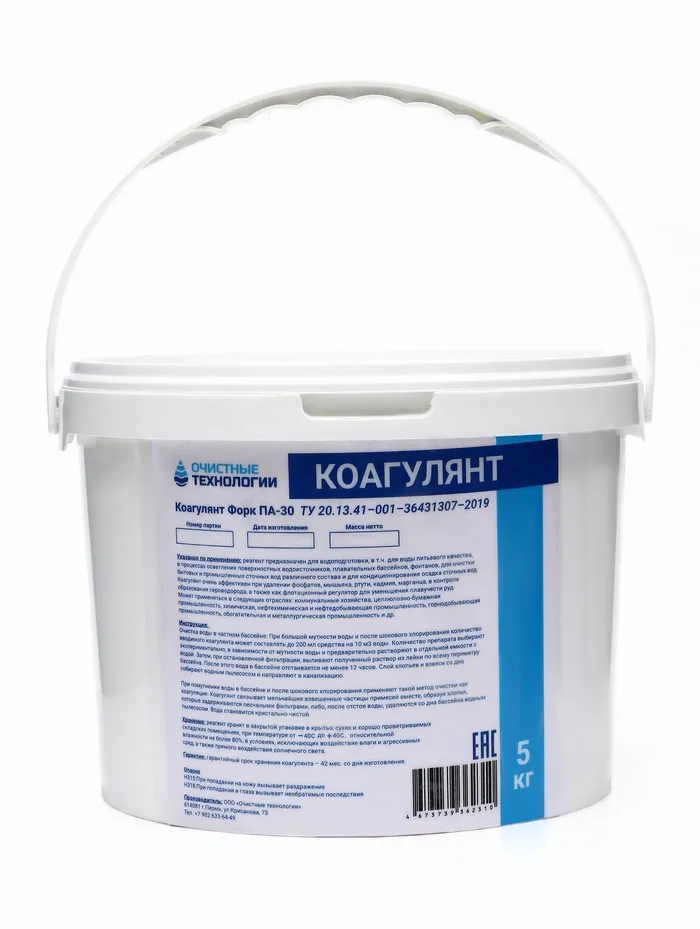 Коагулянт обладает высокой активностью и работает эффективно даже при низких температурах и в сложных условиях. Его использование способствует ускорению процесса флотации и фильтрации, облегчая последующую очистку.