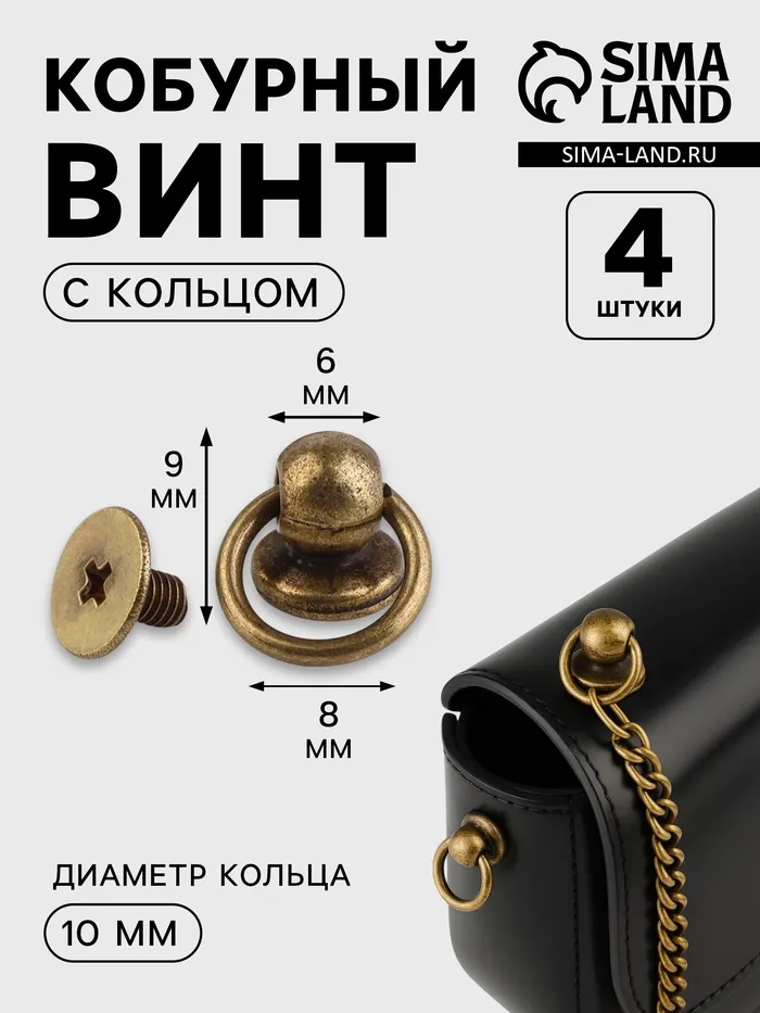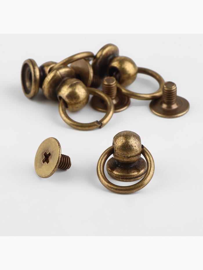 Кобурный винт с кольцом пригодится для установки сумочной фурнитуры, поэтому его ещё называют «ручкодержателем». Также изделие можно использовать в качестве застёжки на браслетах, ремнях и других изделиях из кожи.