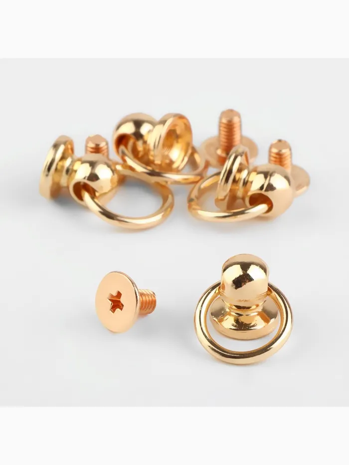 Кобурный винт с кольцом пригодится для установки сумочной фурнитуры, поэтому его ещё называют «ручкодержателем». Также изделие можно использовать в качестве застёжки на браслетах, ремнях и других изделиях из кожи.