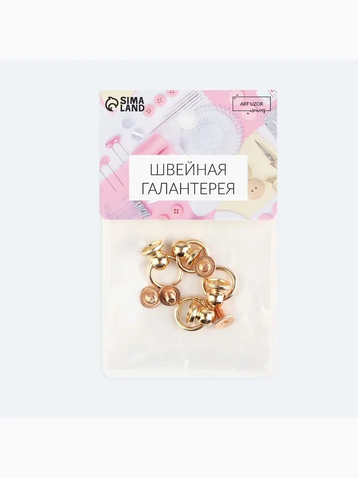 В наборе 4 штуки золотого цвета. Диаметр шляпки 6 мм; диаметр основания 8 мм; высота 9 мм.