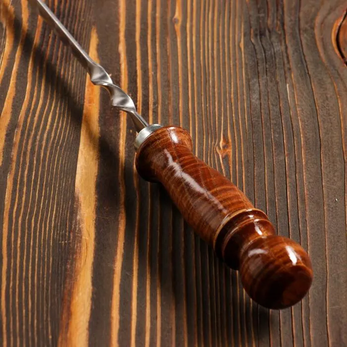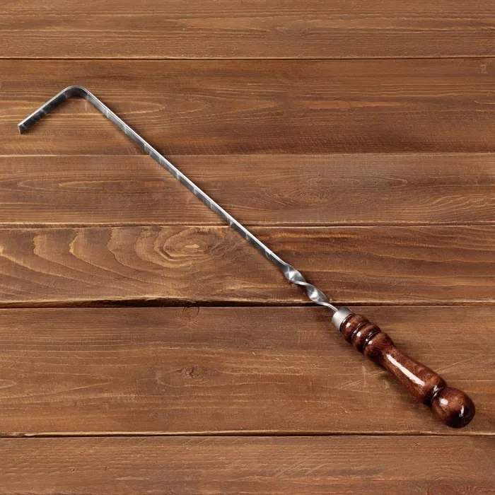 Кочерга узбекская с деревянной ручкой, матовая 40/1 см, полная длина 62 см, сталь 2.5 мм