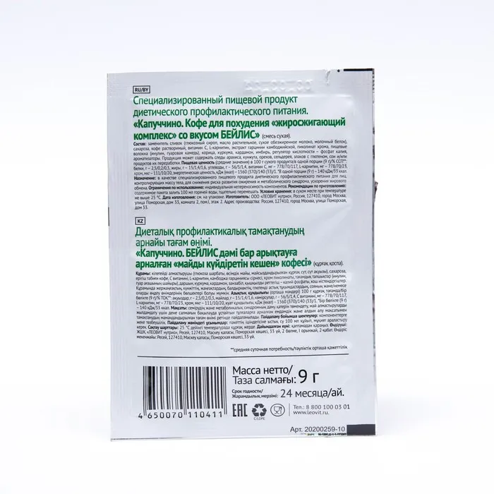 «Капуччино. Кофе для похудения «жиросжигающий комплекс» со вкусом БЕЙЛИС» – заряжает бодростью и содержит компоненты, способствующие: