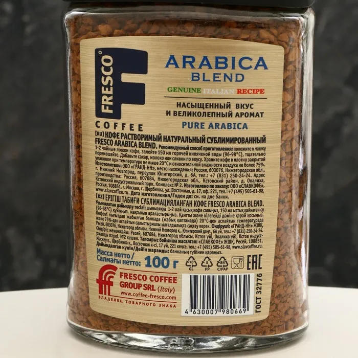 Кофе FRESCO Arabica Blend — это ароматный кофе весом 100 г, который приносит в вашу чашку насыщенный вкус и богатый аромат отборных зерен арабики. Этот кофе предназначен для истинных ценителей, которые ищут идеальное сочетание качества и удовольствия от каждого глотка.
