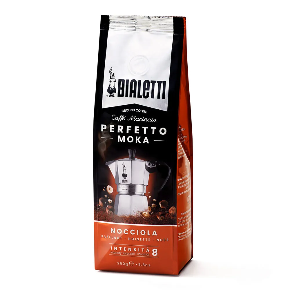 Среднеобжаренный молотый кофе Bialetti «Perfetto Moka Hazelnut» создан для любителей приятных ароматов. Этот кофе пленит тонким ароматом орехов.