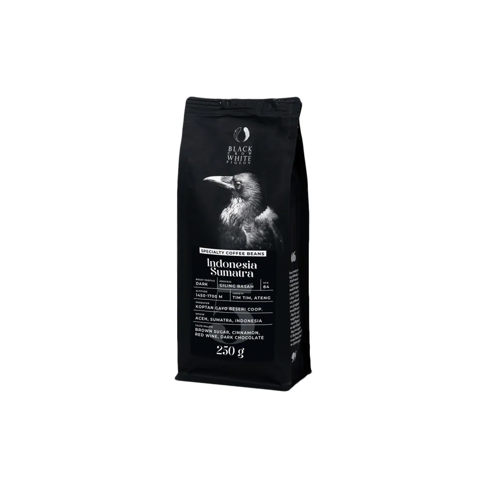 На острове Суматра, на плато Гайо, можно увидеть уникальные кофейные плантации, окруженные великолепными пейзажами. Местные фермеры собирают ягоды и обрабатывают их методом Giling Basah. После ферментации и мытья бобы очищаются влажными, а затем полностью высушиваются, что придает кофе менее кислый и более насыщенный вкус.