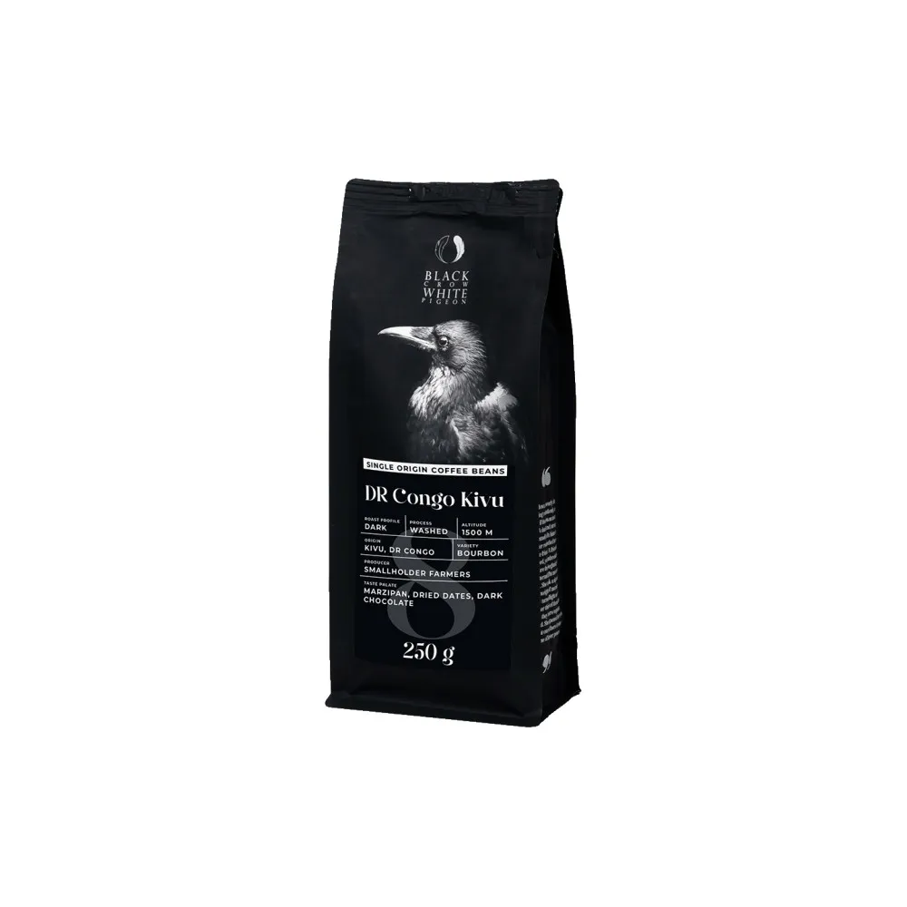 Кофе Black Crow White Pigeon из региона Киву в Конго обладает уникальным вкусом с нотами марципана, сушеных фиников и темного шоколада. Это темная обжарка арабики сорта Бурбон, выращенная на высоте 1500 м над уровнем моря и обработанная мытым методом.