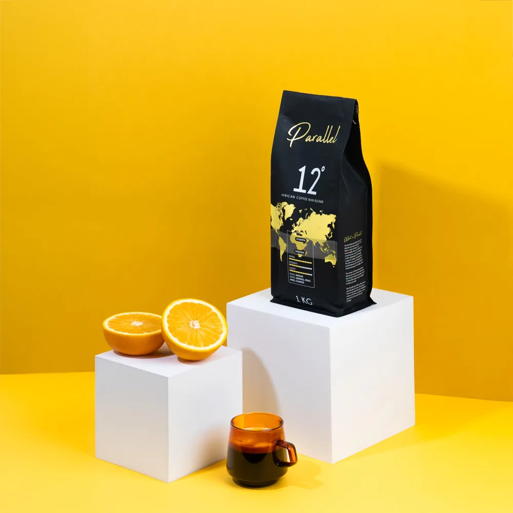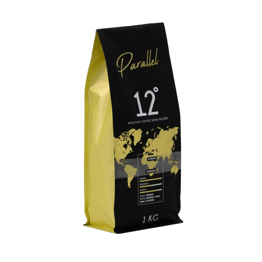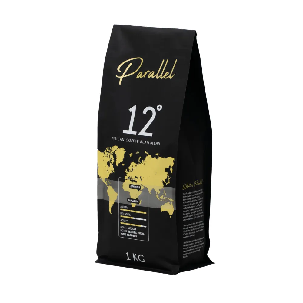 Кофейные зерна "Parallel 12" — это смесь арабики, выращенной в Эфиопии и Танзании. Кофе из этих регионов легкий, с ароматами ягод, фруктов, цветов и легким винным оттенком.