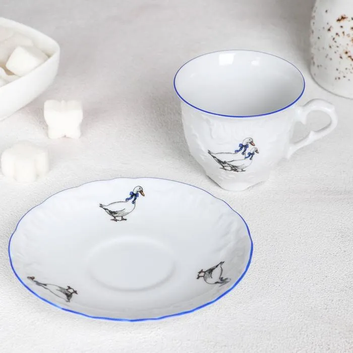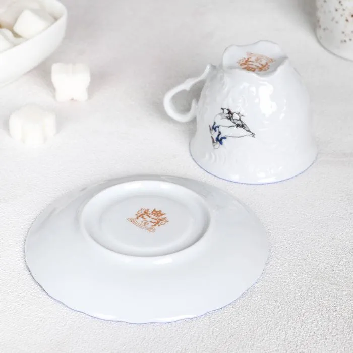 Кофейная пара фарфоровая «Рококо. Гуси»: чашка 100 мл, блюдце d=12,5 см — Характеристики