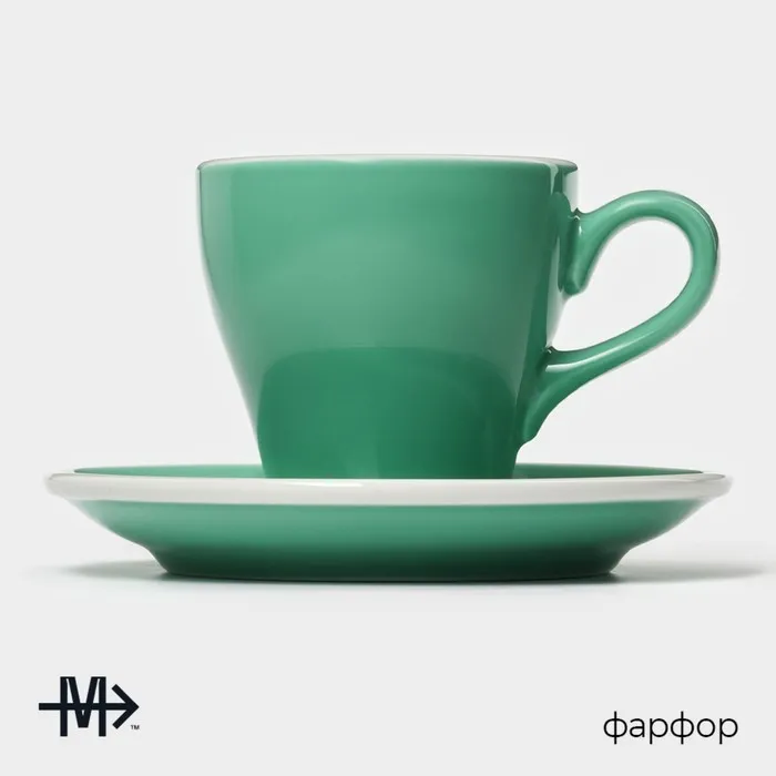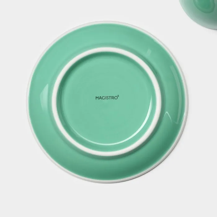 Кофейная пара Magistro Coffee time, 2 предмета: чашка 180 мл, блюдце d=14.5 см, фарфор, бирюзовая — Характеристики