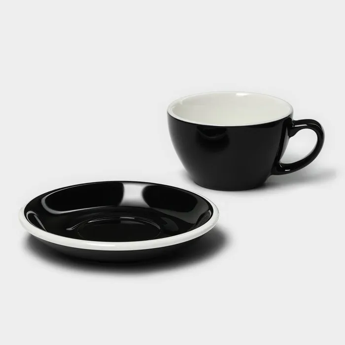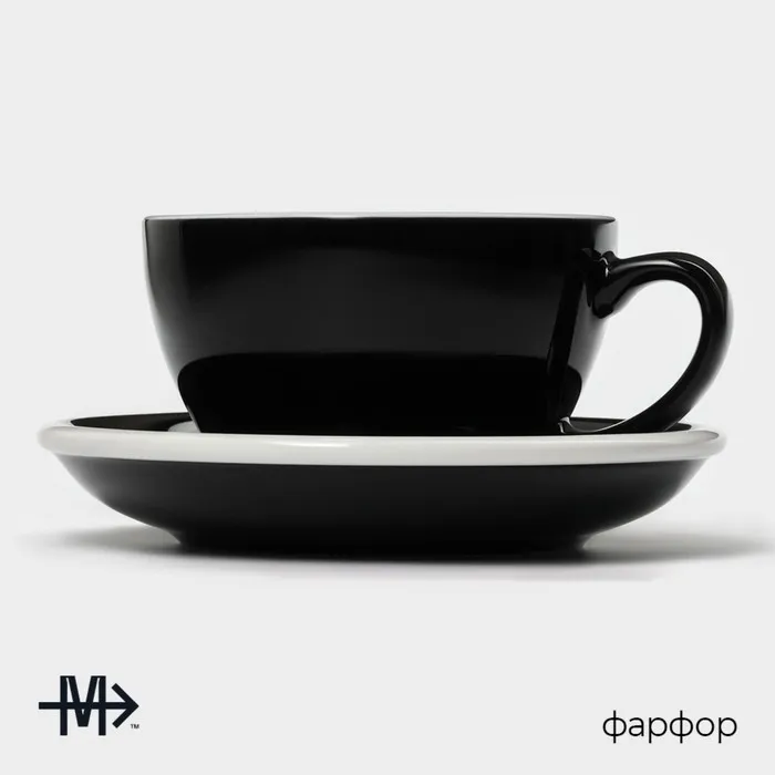 Кофейная пара Magistro Coffee time, чашка 300 мл, блюдце d=15,5 см, фарфор, чёрная — Характеристики