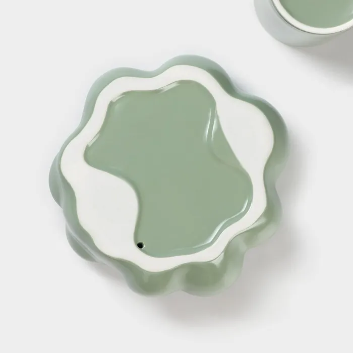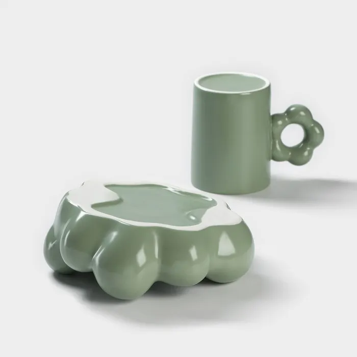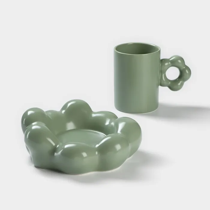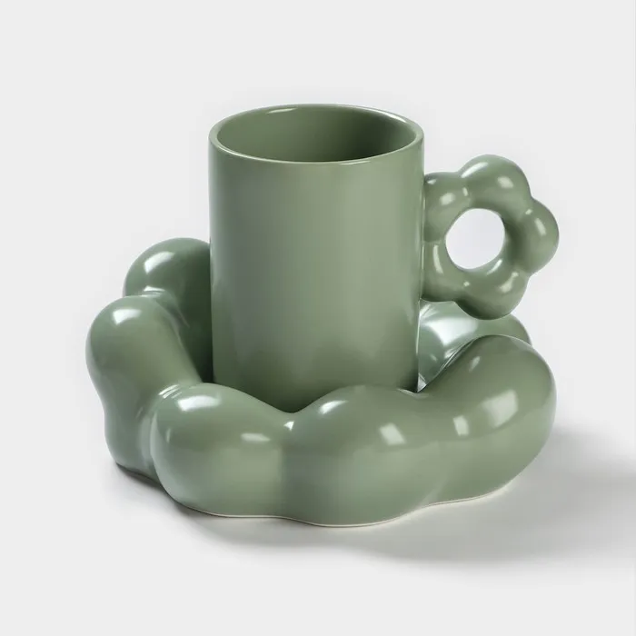 Кофейная пара «Ромашка», 2 предмета: кружка 260 мл, блюдце d=17 см, керамика, цвет зелёный — Характеристики