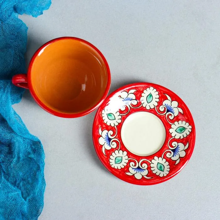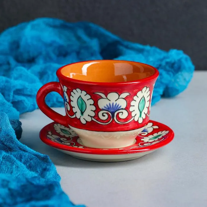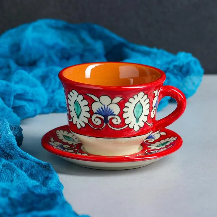 Кофейная пара Шафран Риштанская Керамика, 2 предмета: чашка 100 мл, блюдце d=10 см, красная — Характеристики