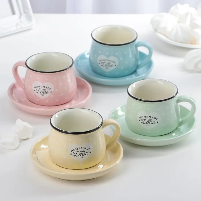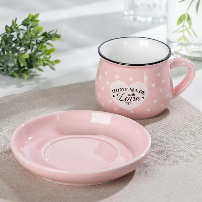 Кофейная пара «Уютный дом», 2 предмета: чашка 180 мл, блюдце d=12,5 см, керамика, цвет МИКС — Характеристики