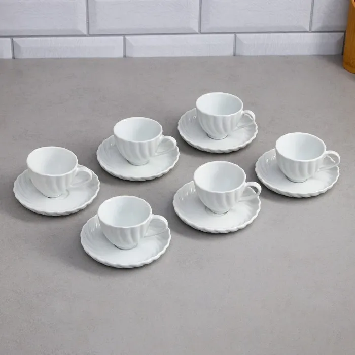 Кофейный набор «Кармен» изготовлен из качественного фарфора. Чашки подходят для кофе, чая, сока, лимонадов и других напитков. Фарфор не впитывает цвет напитков и не деформируется от влаги. Фарфоровые чашки долгое время будут выглядеть, как новые. Благодаря утонченному дизайну, изделие легко украсит вашу кухню, а также прекрасно подойдёт в качестве подарка.