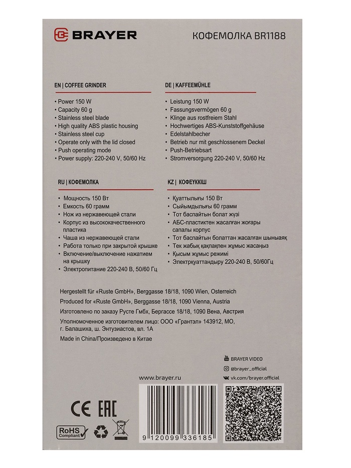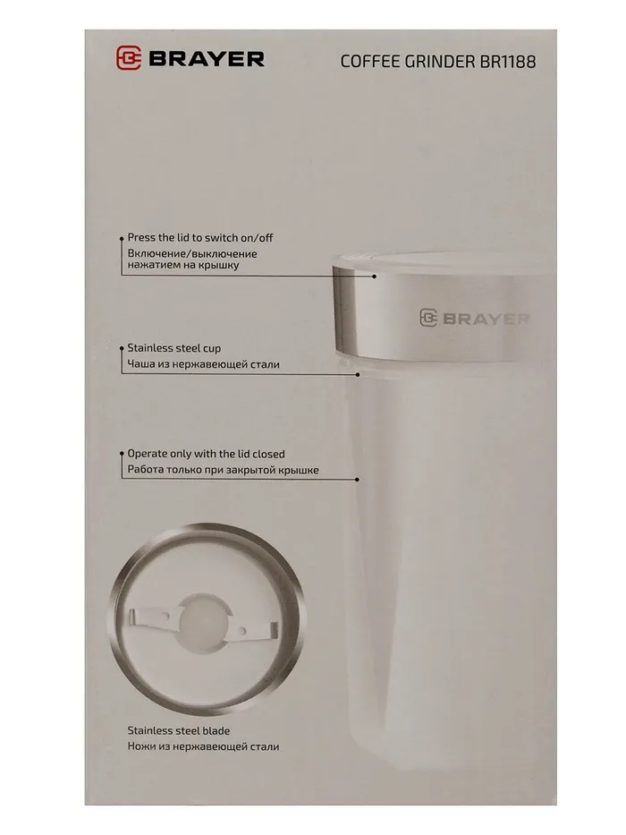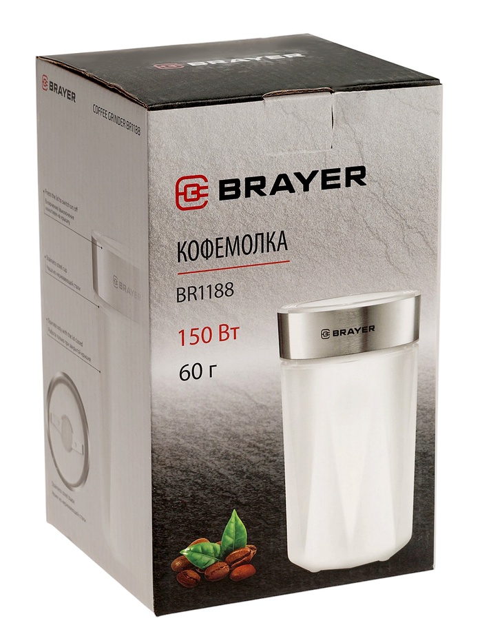 Кофемолка BRAYER 1188BR, электрическая, ножевая, 150 Вт, 60 грамм, белая — Характеристики