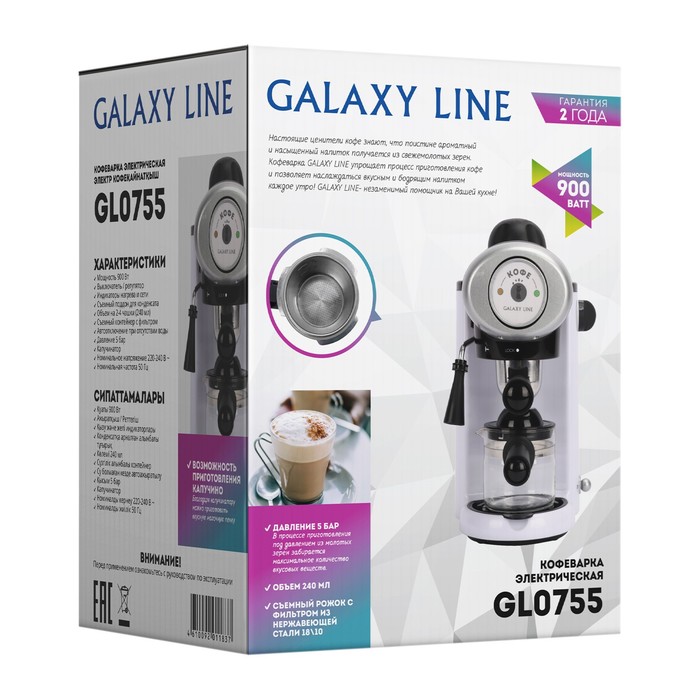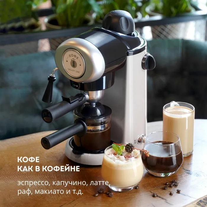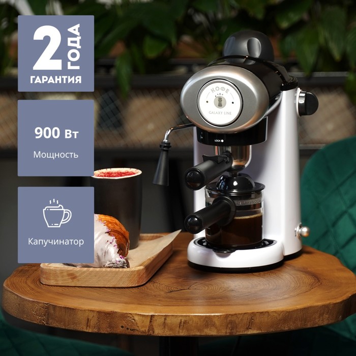 Кофеварка Galaxy GL 0755, рожковая, 900 Вт, 0.24 л, капучинатор, белая — Характеристики