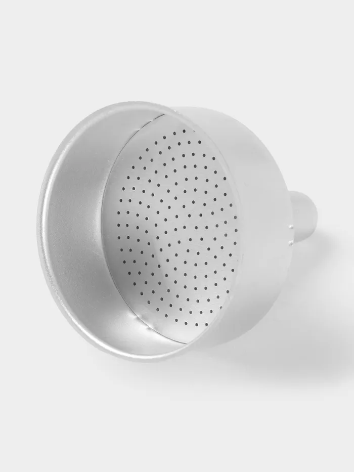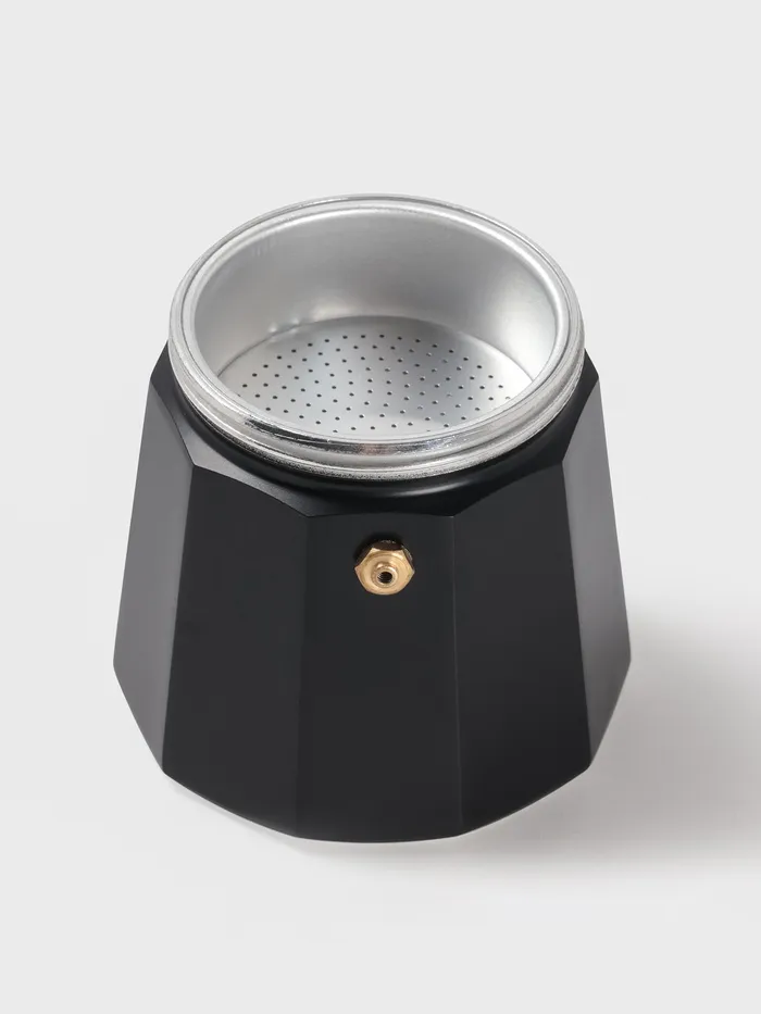 - Вставьте воронку в нижний резервуар, уберите излишки кофе с бортиков, чтобы они не прилипли к уплотнителю, и крепко прикрутите верхнюю часть на место.