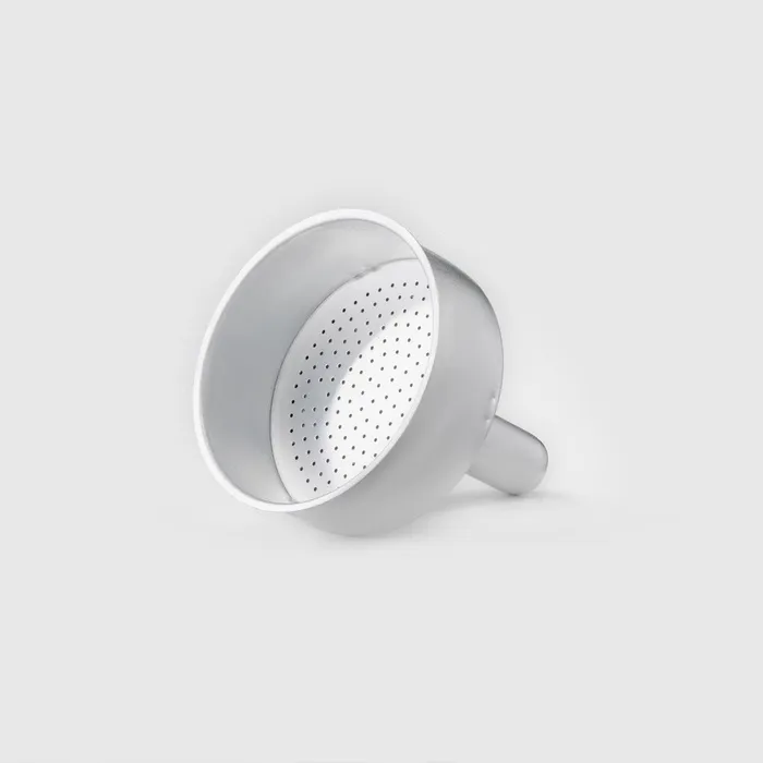 - Вставьте воронку в нижний резервуар, уберите излишки кофе с бортиков, чтобы они не прилипли к уплотнителю, и крепко прикрутите верхнюю часть на место.
