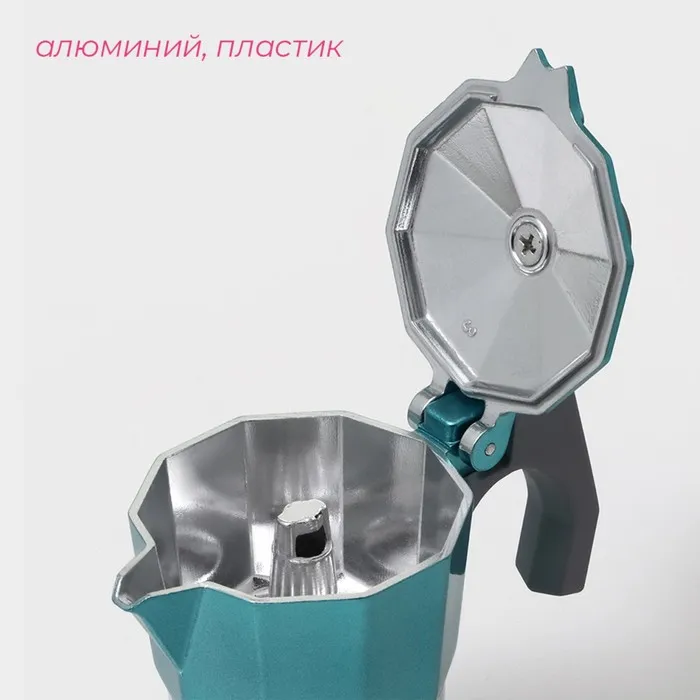Кофеварка гейзерная Доляна Azure, на 1 чашку, 50 мл, алюминий, бирюзовая — Характеристики