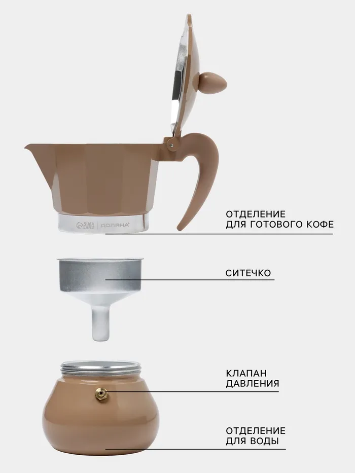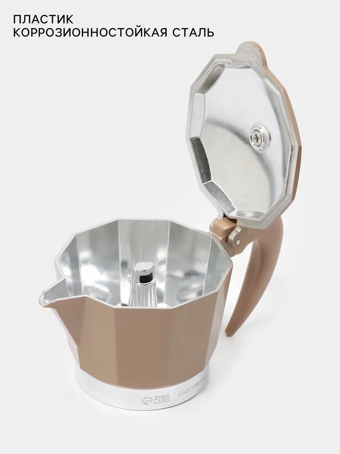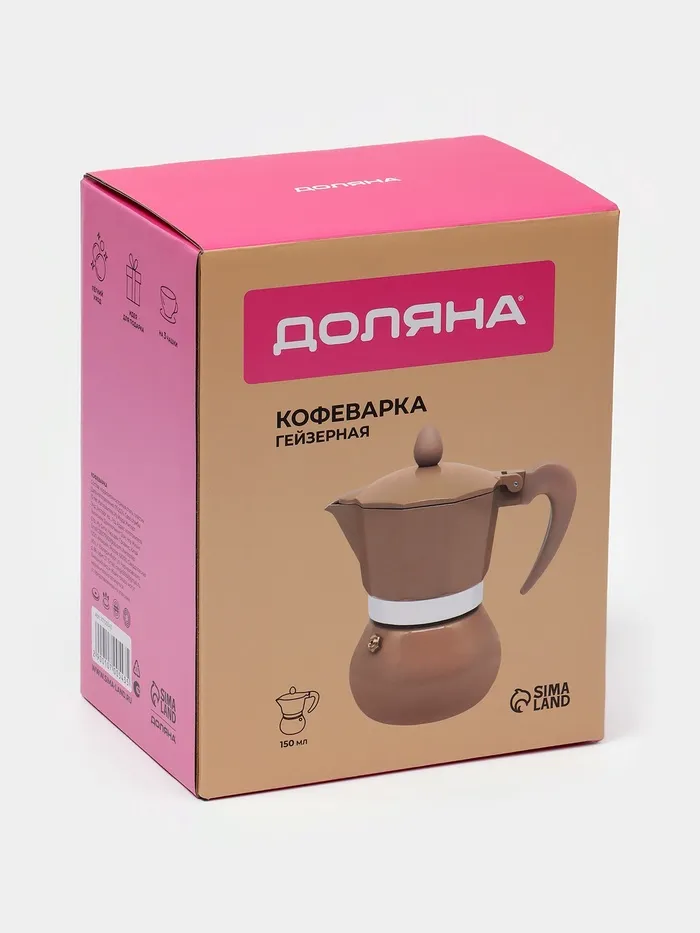 Кофеварка гейзерная Доляна «Мокко», 150 мл, на 3 чашки, нержавеющая сталь, коричневая — Характеристики