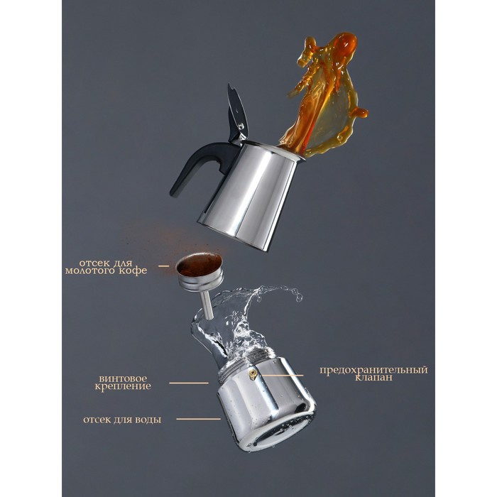 Кофеварка гейзерная Доляна «Стиль», на 4 чашки, 200 мл — Характеристики