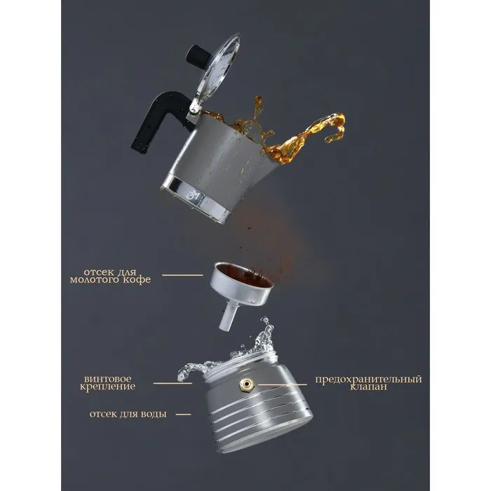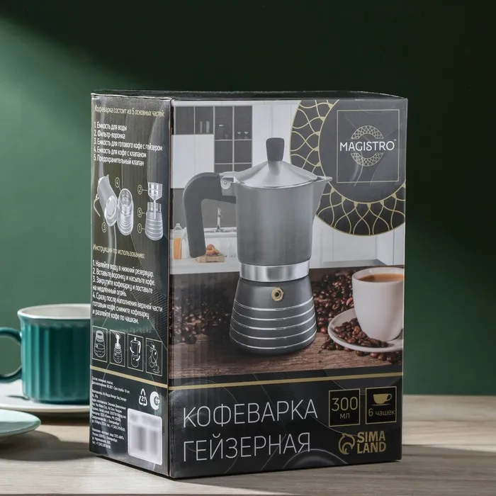 Кофеварка гейзерная Magistro Moka, на 6 чашек, 300 мл, алюминий, серая — Характеристики