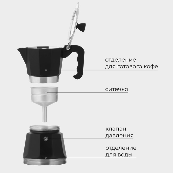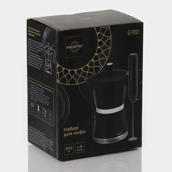 Кофеварка гейзерная с капучинатором Magistro Blackout, набор 2 предмета, 300 мл, чёрная — Характеристики