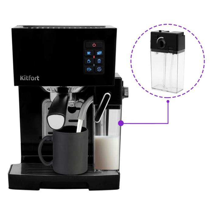 Кофеварка Kitfort КТ-743, рожковая, 1400 Вт, 1.4/0.4 л, чёрная — Характеристики
