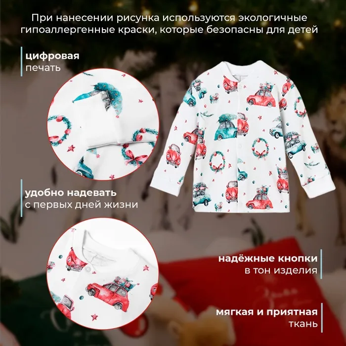 Кофточка детская MINAKU "New Year's cars", цвет белый, рост 68-74 см — Характеристики