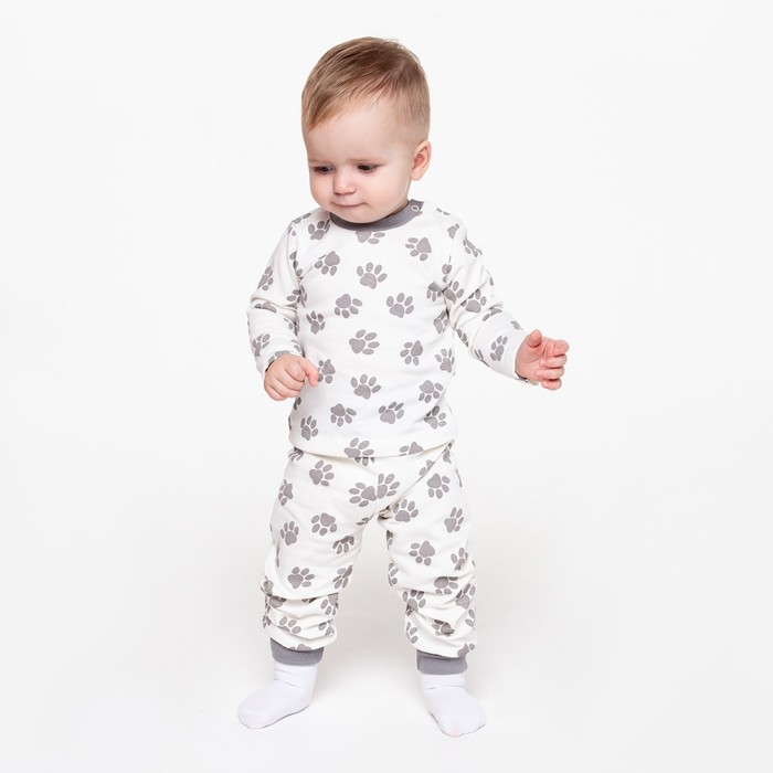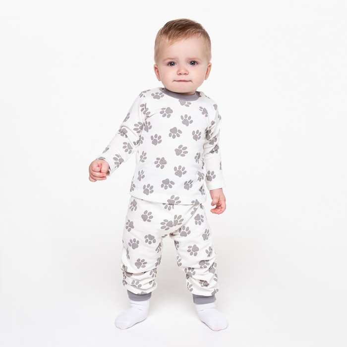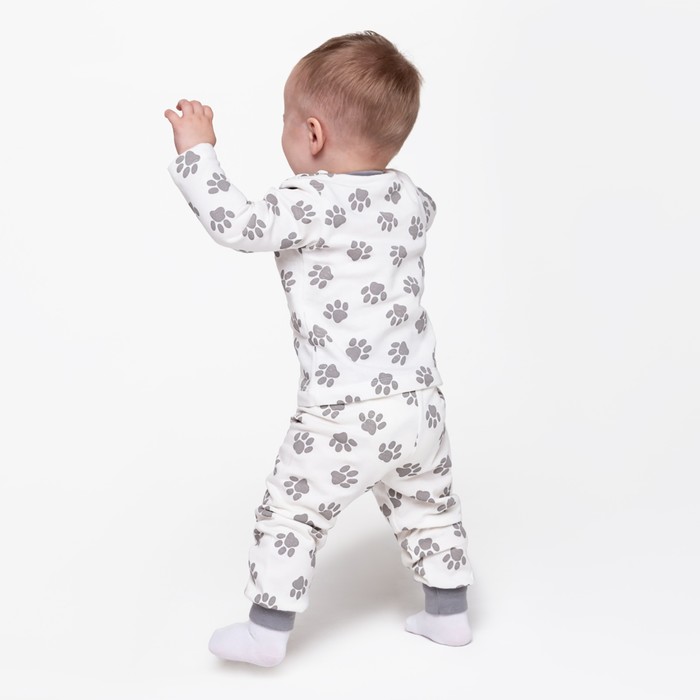 Кофточка (лонгслив) детская «Лапки», цвет белый/серый, рост 86 см — Характеристики