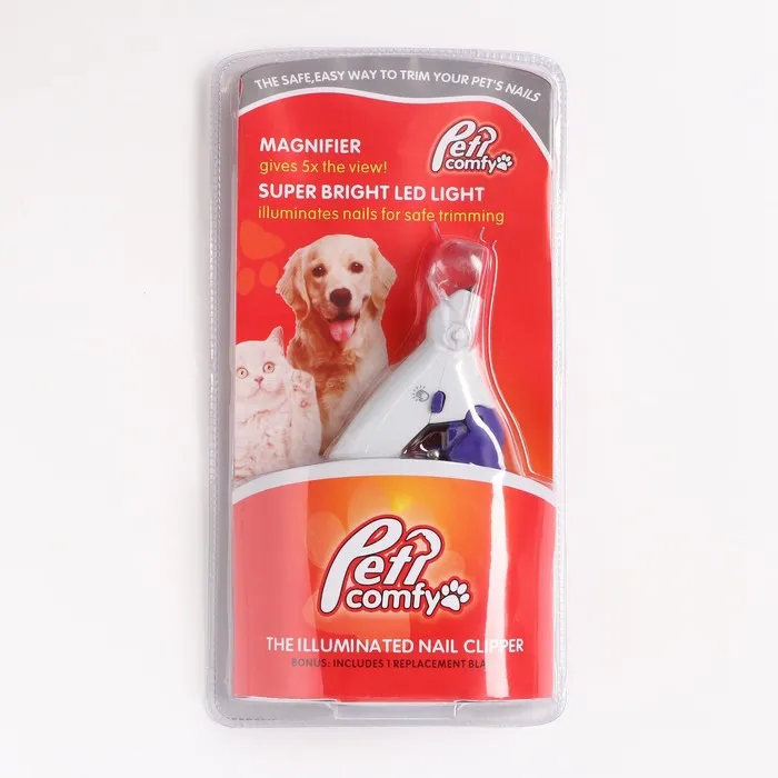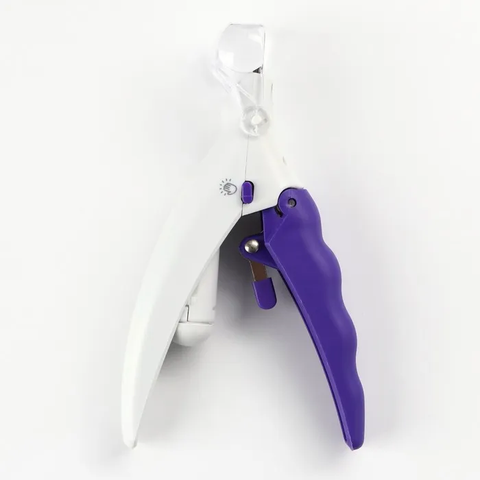 Когтерез для животных, с LED фонарём и контейнером для когтей, на батарейках, бело-фиолет. — Характеристики