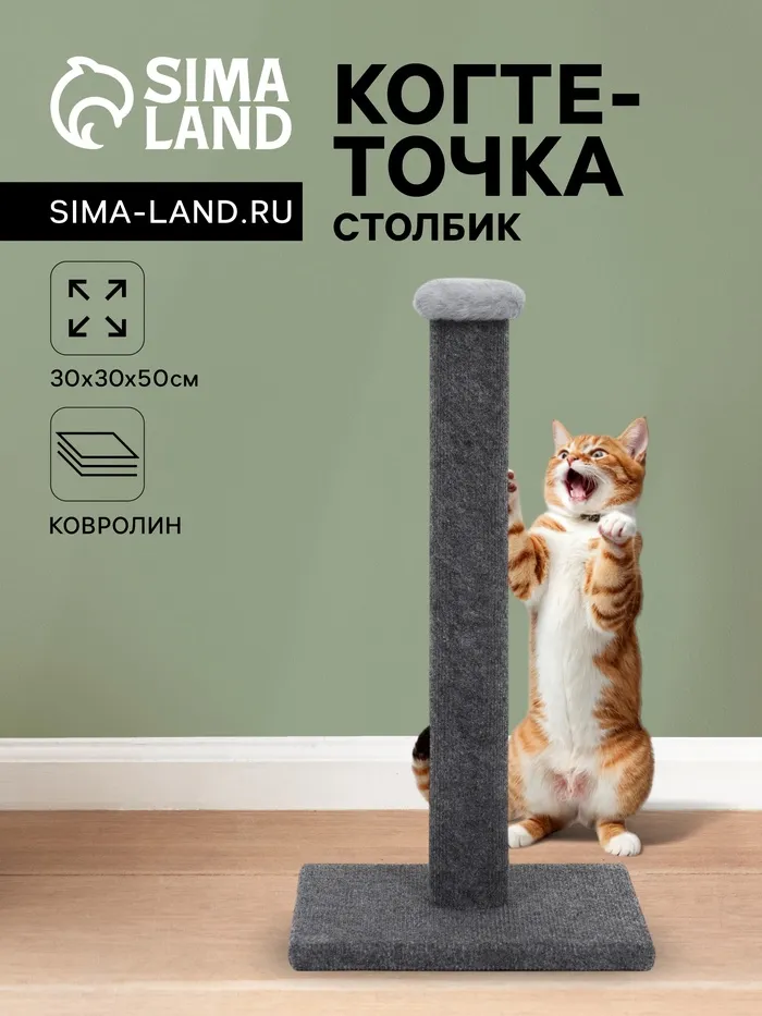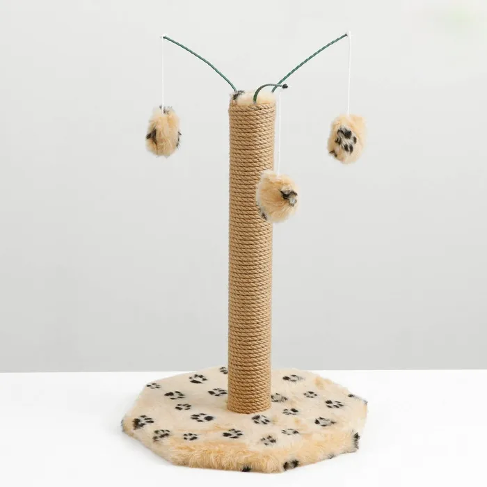 Столбик установлен на прочной подставке, которая обеспечивает стабильность и предотвращает его опрокидывание. Когтеточка является не только полезной, но и интересной игрушкой, которая помогает кошке развивать свои навыки и забавляться.