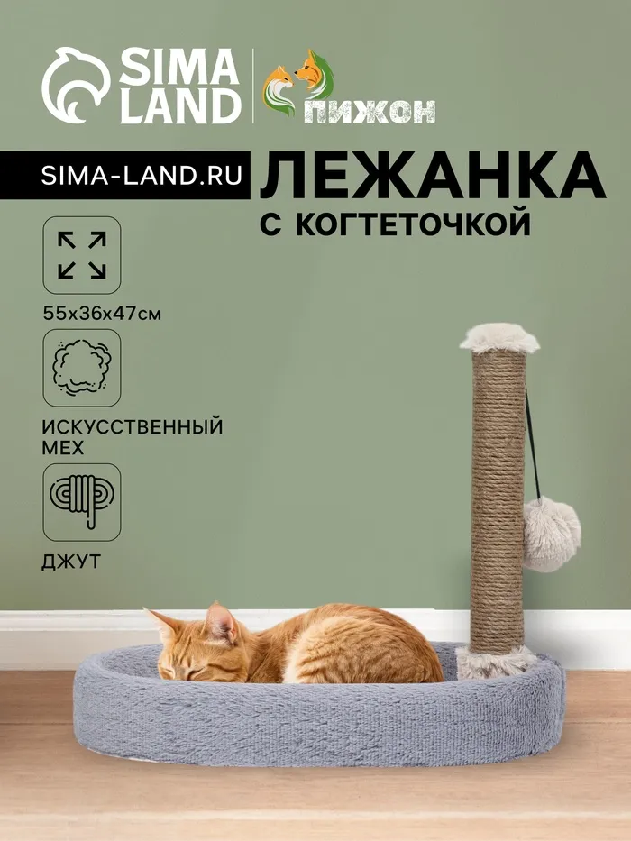 Она состоит из вертикального столбика, обтянутого материалом, который позволяет кошке точить когти без повреждения мебели.