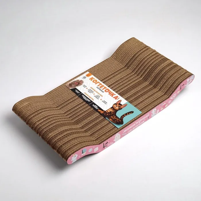 Изделие из гофрокартона безопасно для когтей котов и кошек, потому что выполнено из натуральных материалов. Структура когтеточки напоминает домашним питомцам кору дерева, поэтому изделие привлекает их внимание и является антистрессом. Питомцу больше не захочется царапать мебель и обои в доме!