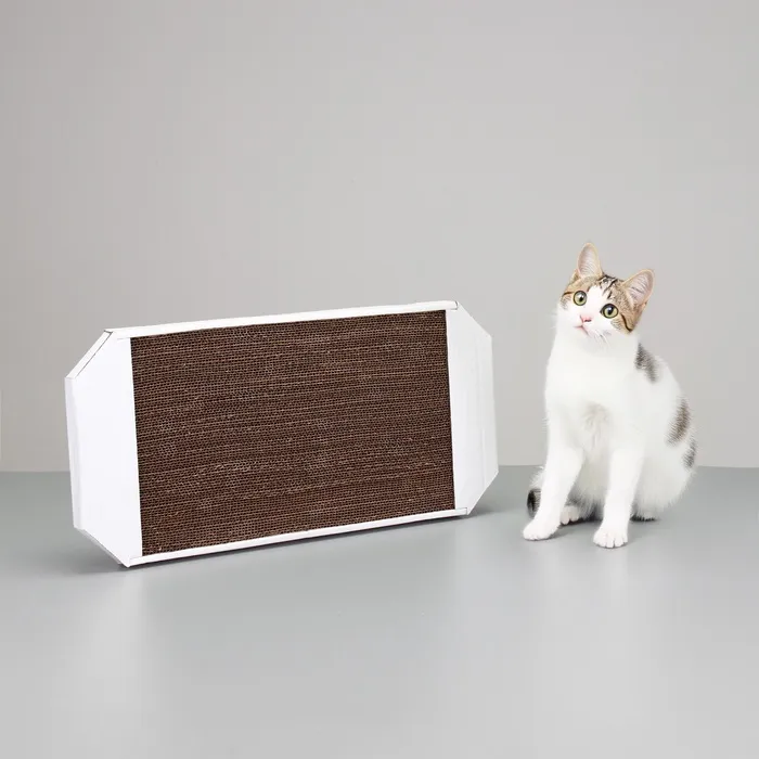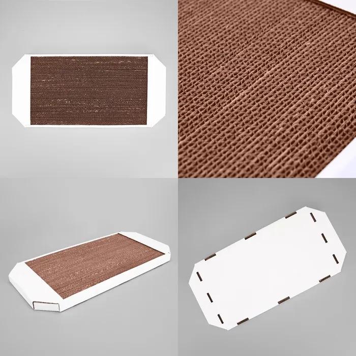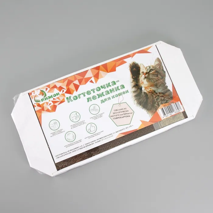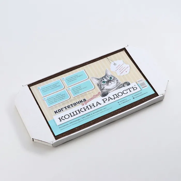 Он выполнен из гофрокартона, который изготовлен из природного материала - древесины и по своим свойствам очень на нее похож, чем и привлекают наших питомцев. Он достаточно плотен, чтобы выдержат острые коготки, и оптимально податлив, чтобы привлекать кошку.