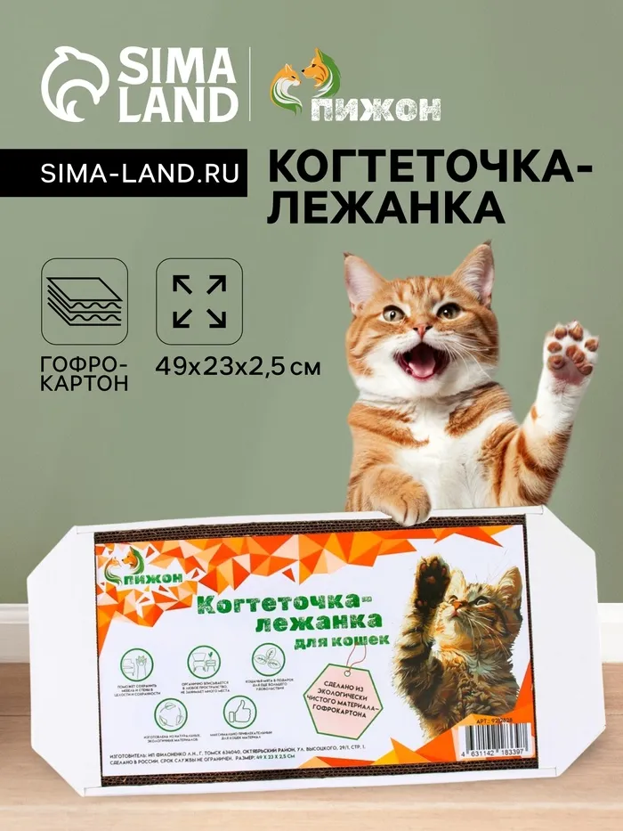 Когтеточка-лежанка из гофрокартона "Пижон", 57 х 28,5 х 2,5 см