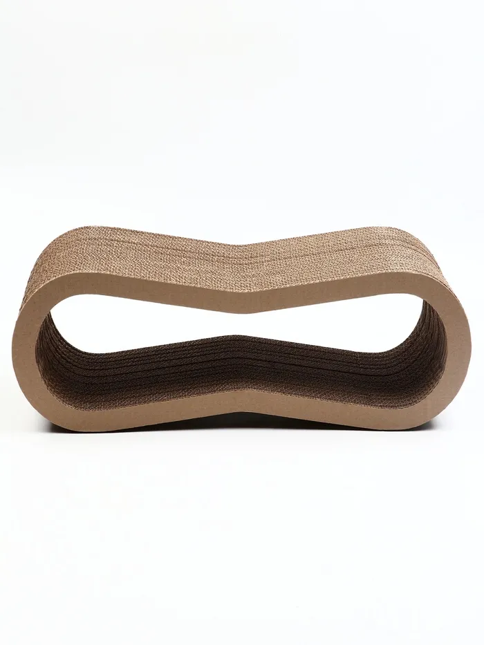 - Форма «волна»: Повторяет естественную позу кошки во время сна, поддерживает голову и шею, обеспечивая комфорт. Одновременно служит когтеточкой — кошка может поточить когти на изгибах.