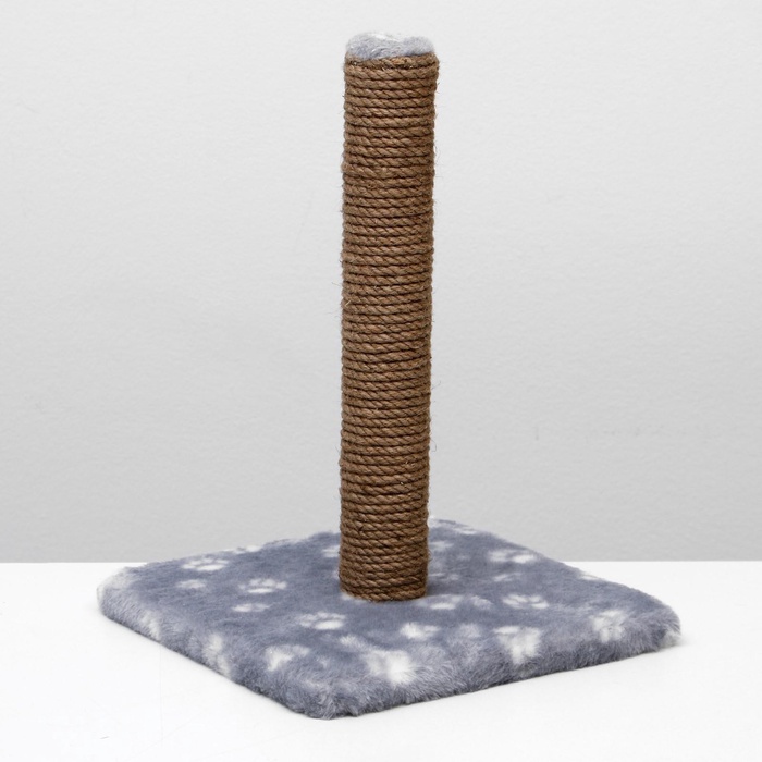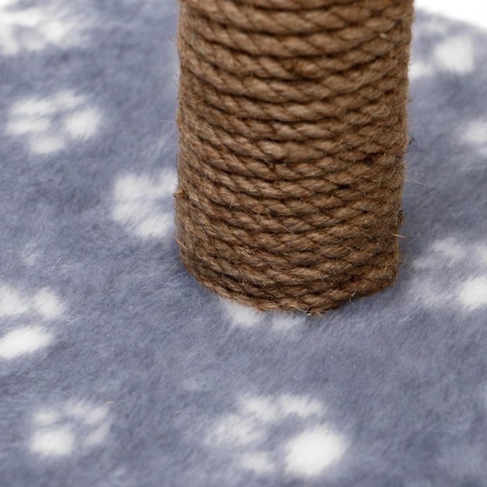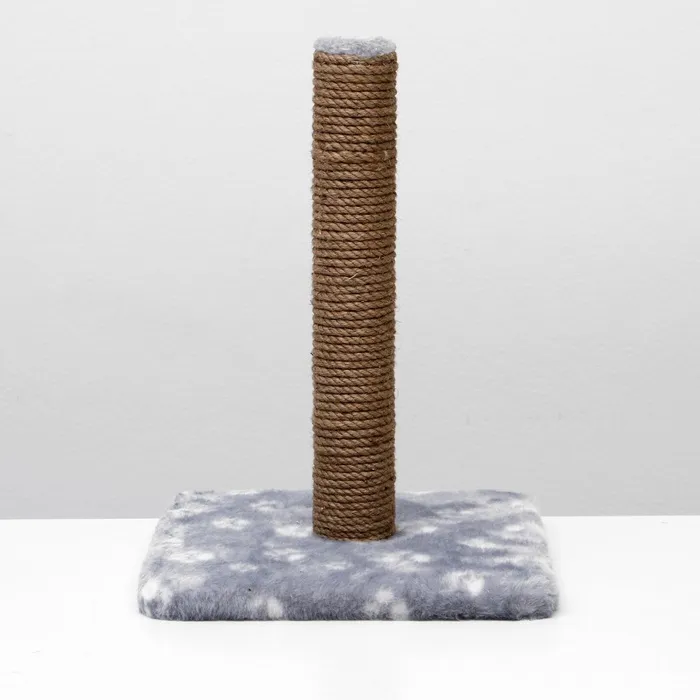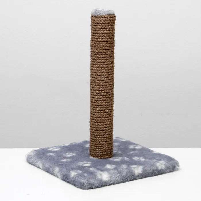 Изготовленная из натурального джута и украшенная серым искусственным мехом с рисунком в виде лапок, она не только прекрасно впишется в любой интерьер, но и будет служить долго благодаря прочным материалам. Вертикальный столбик, обмотанный джутом, создан специально для того, чтобы выдерживать активные игры и когтевые атаки вашего пушистого друга.