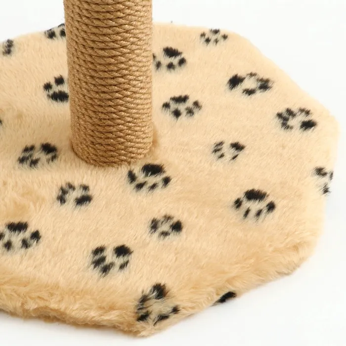 Когтеточка высотой 53 см и основанием 35 х 35 см идеально подходит для кошек любого возраста и породы. Восемь углов основания добавляют устойчивости конструкции, а закрепленные на столбике три пумпона мгновенно привлекут внимание вашего питомца. Котята быстро научатся пользоваться этой когтеточкой благодаря таким игровым элементам, что избавит вашу мебель от царапин и подарит кошке радость от игр.