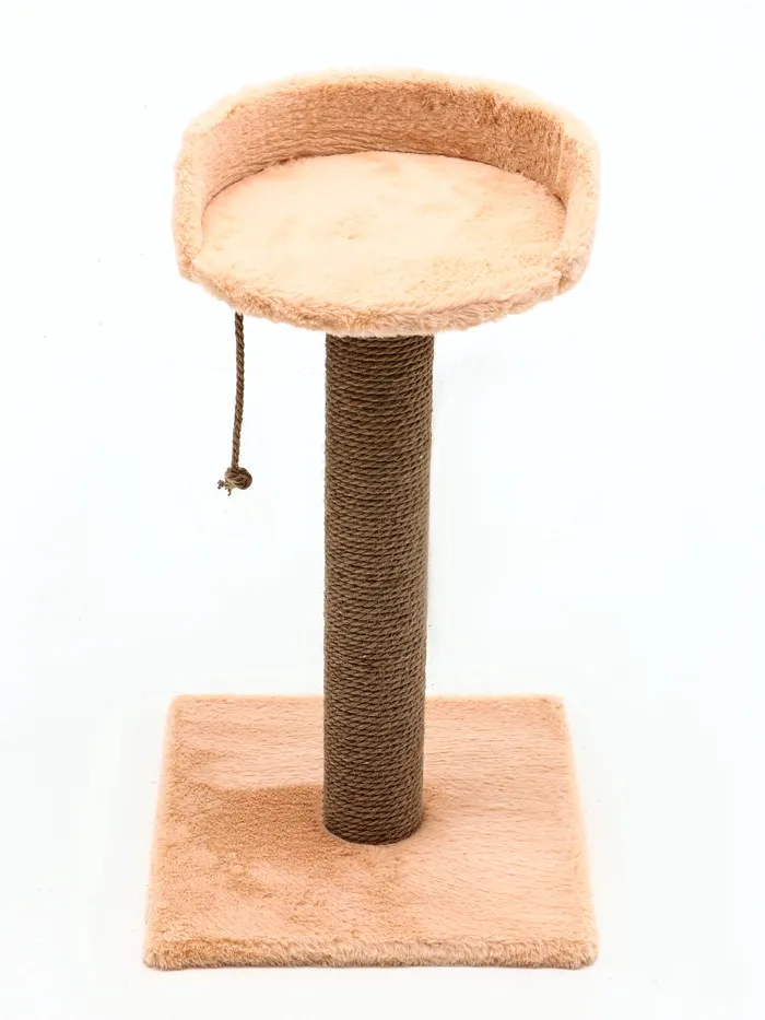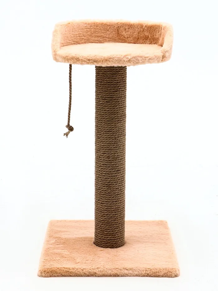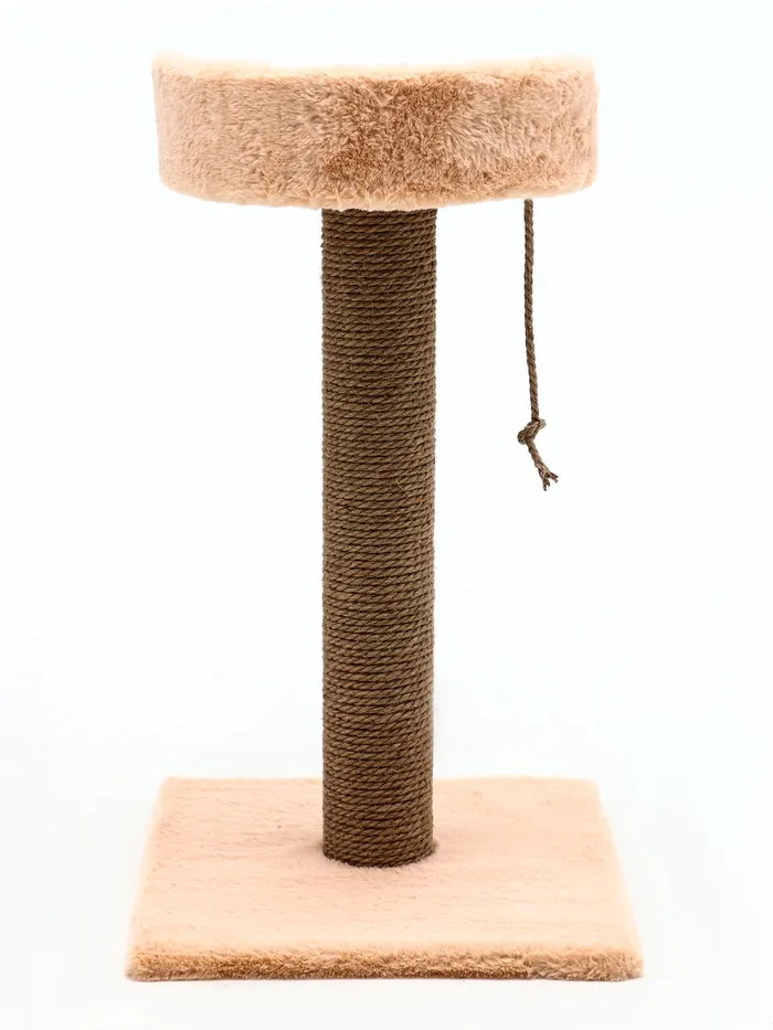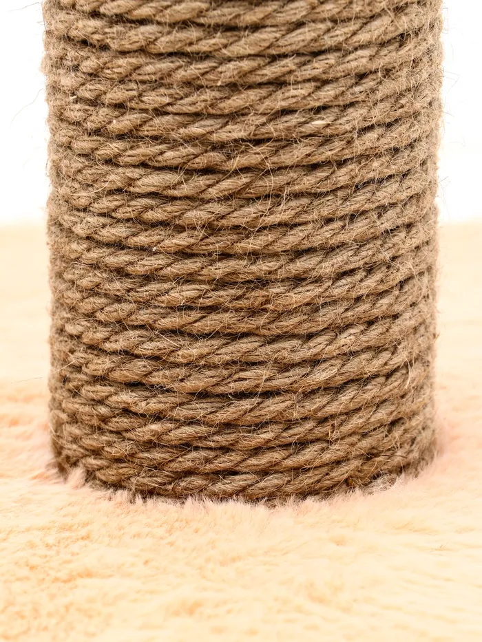 - Джутовая обмотка столба: Плотный натуральный материал выдерживает активное царапание. Кошка точит когти, не повреждая мебель.