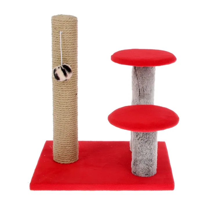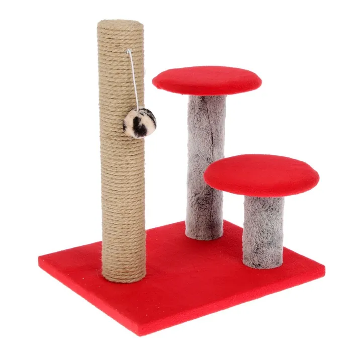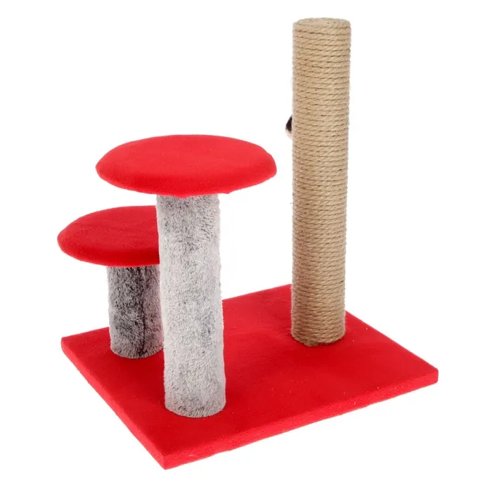 Благодаря прочной джутовой обмотке столбика, когтеточка идеально подходит для стачивания когтей, что поможет сохранить мебель и обои в целости. А благодаря полкам-лежанкам и оригинальной игрушке в виде грибов, ваш питомец сможет не только точить когти, но и с удовольствием играть и отдыхать.