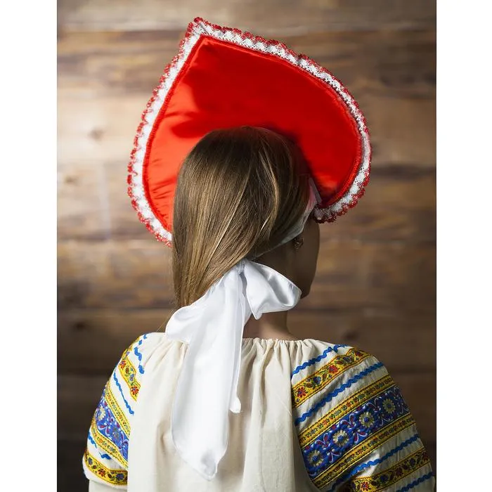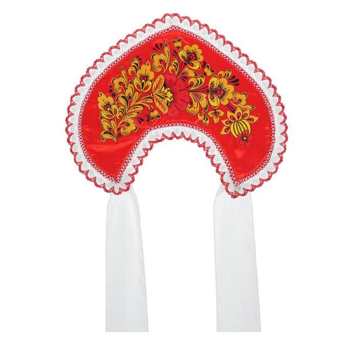 Кокошник «Хохлома принт», красный атлас, ленты МИКС — Характеристики