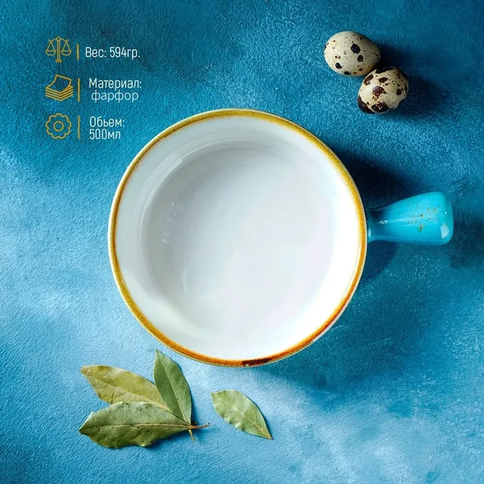 Кокотница Magistro «Церера», 500 мл, d=15 см, фарфор, голубая — Характеристики